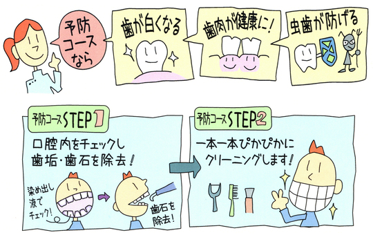 このように、お口の状態に合わせた「予防プログラム」を立案することで、効果的に虫歯や歯周病を防ぎます。 なお、こちらで紹介した予防プログラムは保険治療で行えます。