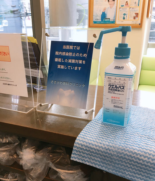 診察の際、症状をお伺いするときに、多くの皆さんは口腔内に指をつっこみ、「ここが痛い」とおっしゃいます。 しかしそのあと、日頃、手指のアルコール消毒やマスク装着など熱心な方でも、そこで唾液の付着したことを一切忘れてしまい、診療台の手すりや院内の調度品やドアの取っ手など、平気で触れてしまいます。