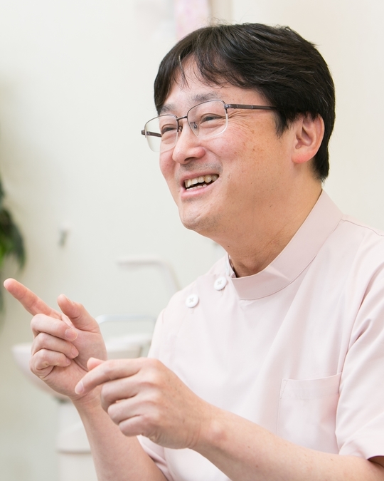 歯科医学は日夜進歩しています。その進歩は材料だけでなく、治療方法や考え方など多岐にわたります。治療の現場でそれを生かすためには、歯科医と患者さまとの信頼関係を築くことが大切だと考えています。歯科医学は歯科医のためではなく患者さまのためのものです。最新の技術や材料もふくめた最適な治療方法をお互いの合意のもとに進めて行くために、わかりやすい説明と納得のいく説明ができるよう一生懸命工夫をしております。多くの方にお口の幸せが届くよう、頑張っていきたいと考えています。