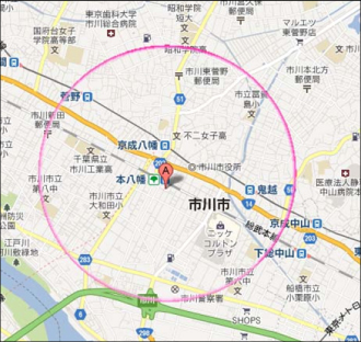 市川市内、中央部の、当院から半径おおよそ1km圏内。自転車にてお伺いしております。