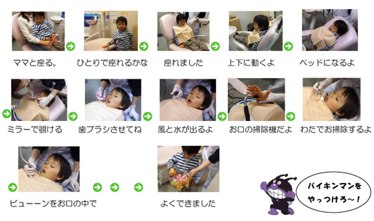 むし歯、バイキンマンなど、絵本やマンガなどで知識をつける。